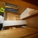 Er zijn twee slaapkamers. Torino 12: 1 slaapkamer met 1 tweepersoonsbed (140x200) en een kamer een stapelbed en los bed.