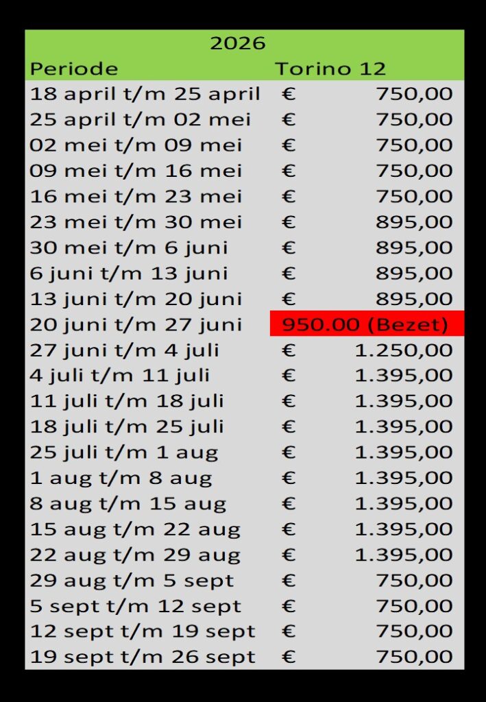 De prijs is per week van zaterdag tot zaterdag. Dit is exclusief schoonmaakkosten a €100,00